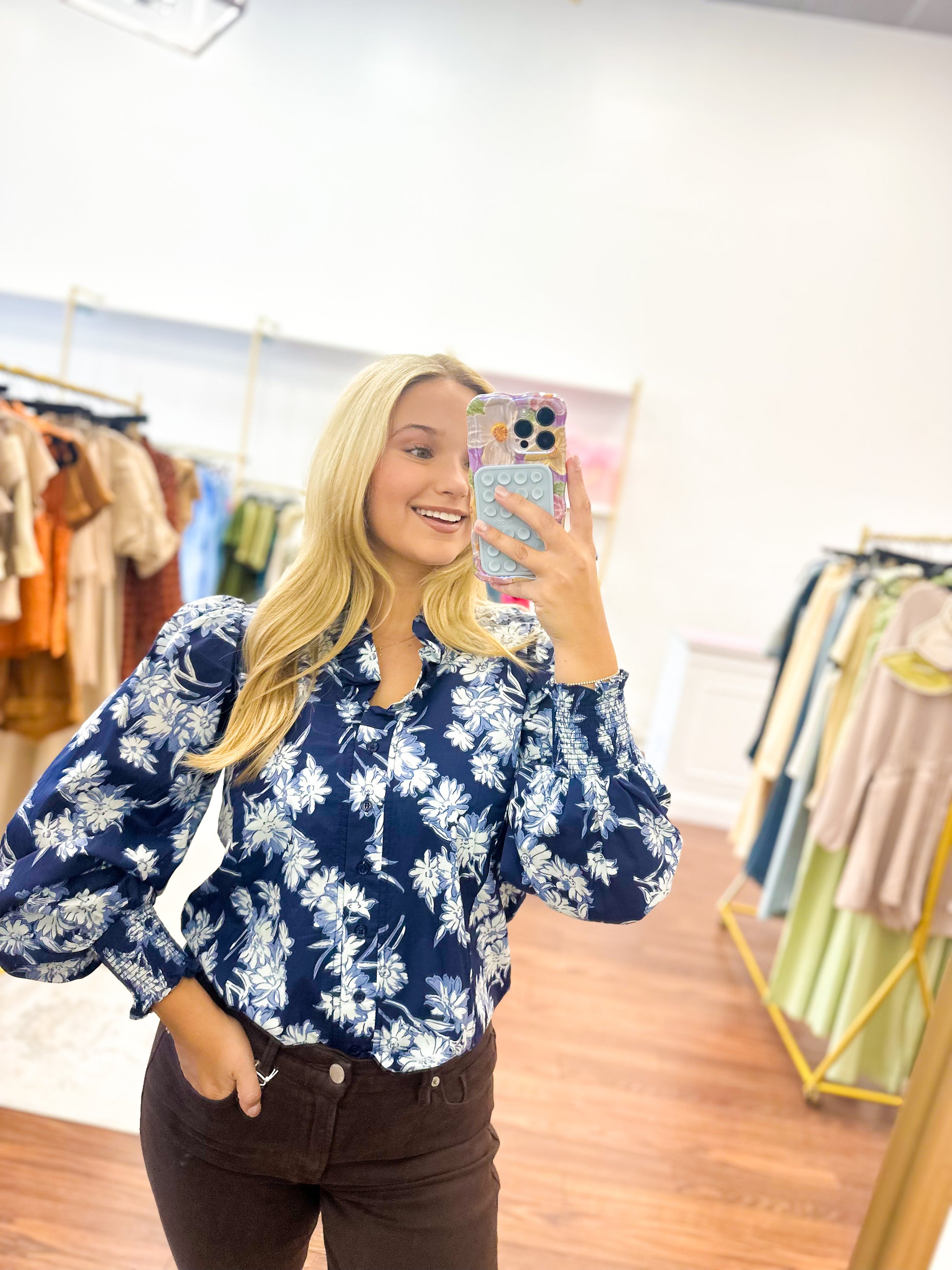 navy floral print top