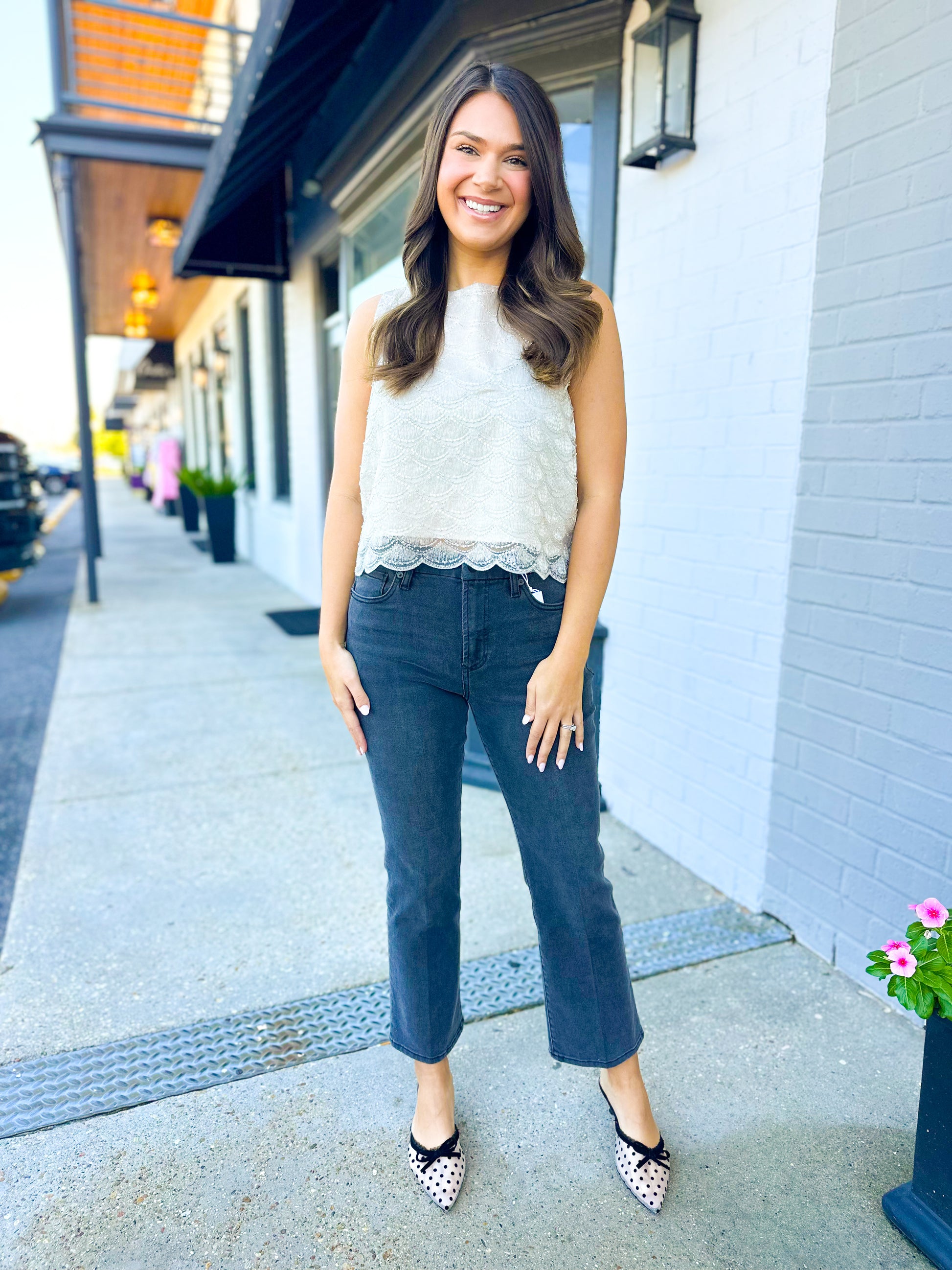 The Jeanne flare jeans seamlessly blend style with comfort.