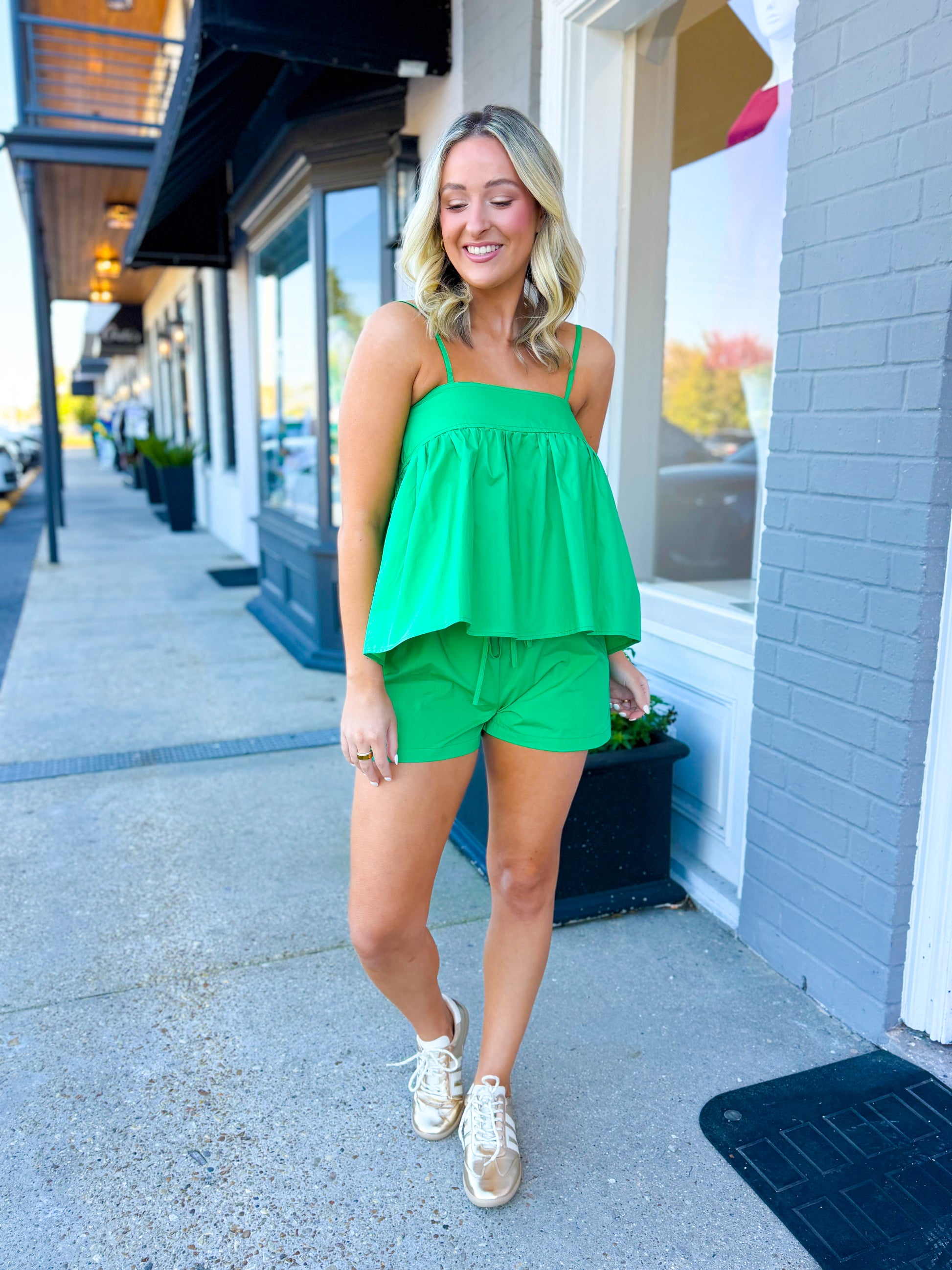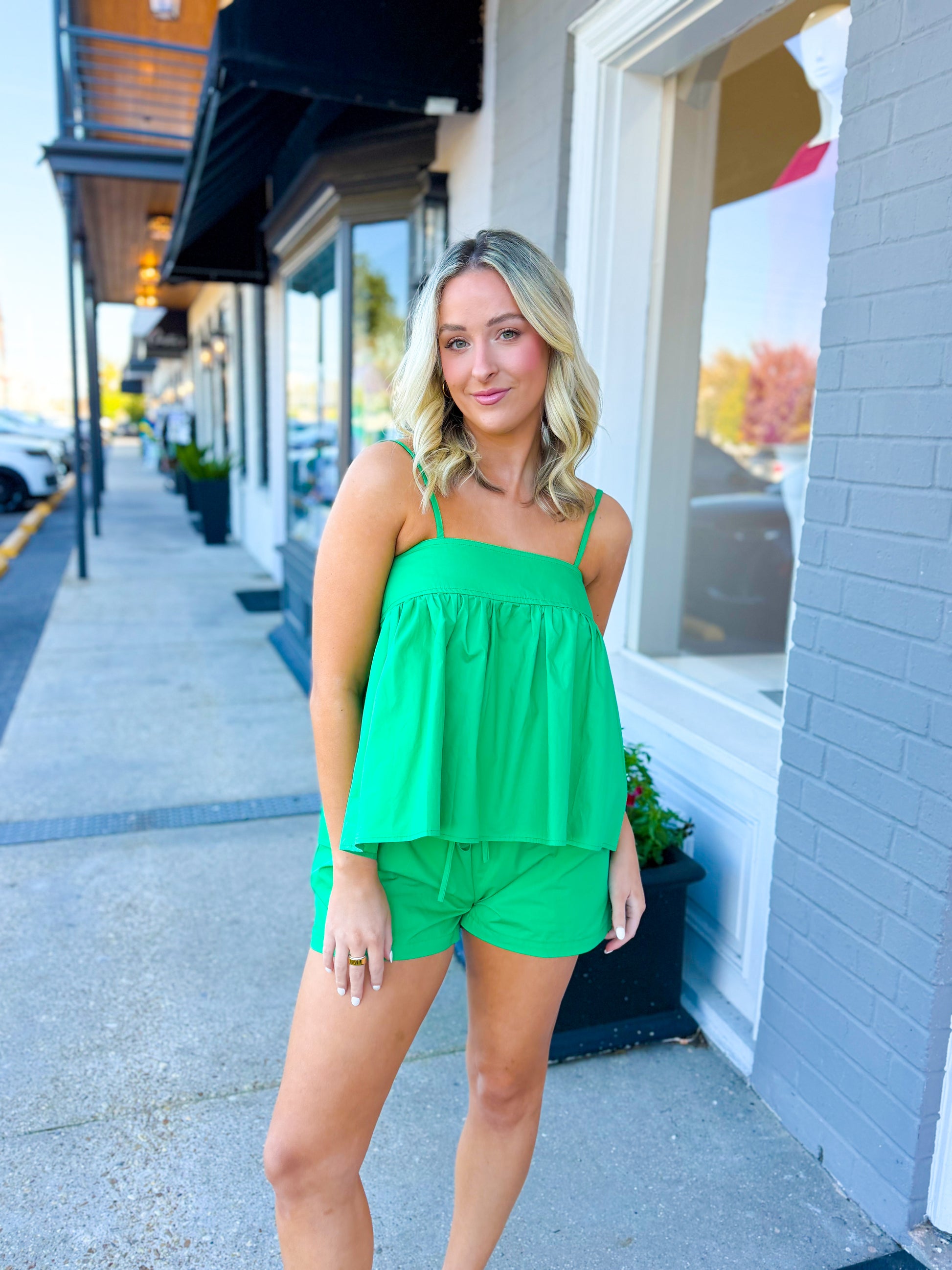 Revitalize your workout wardrobe with our Leaf Set! This vibrant green tank and shorts combo will keep you cool and comfortable while you sweat it out. Say goodbye to boring workouts and hello to a burst of energy and style. Upgrade your fitness game with the Leaf Set!